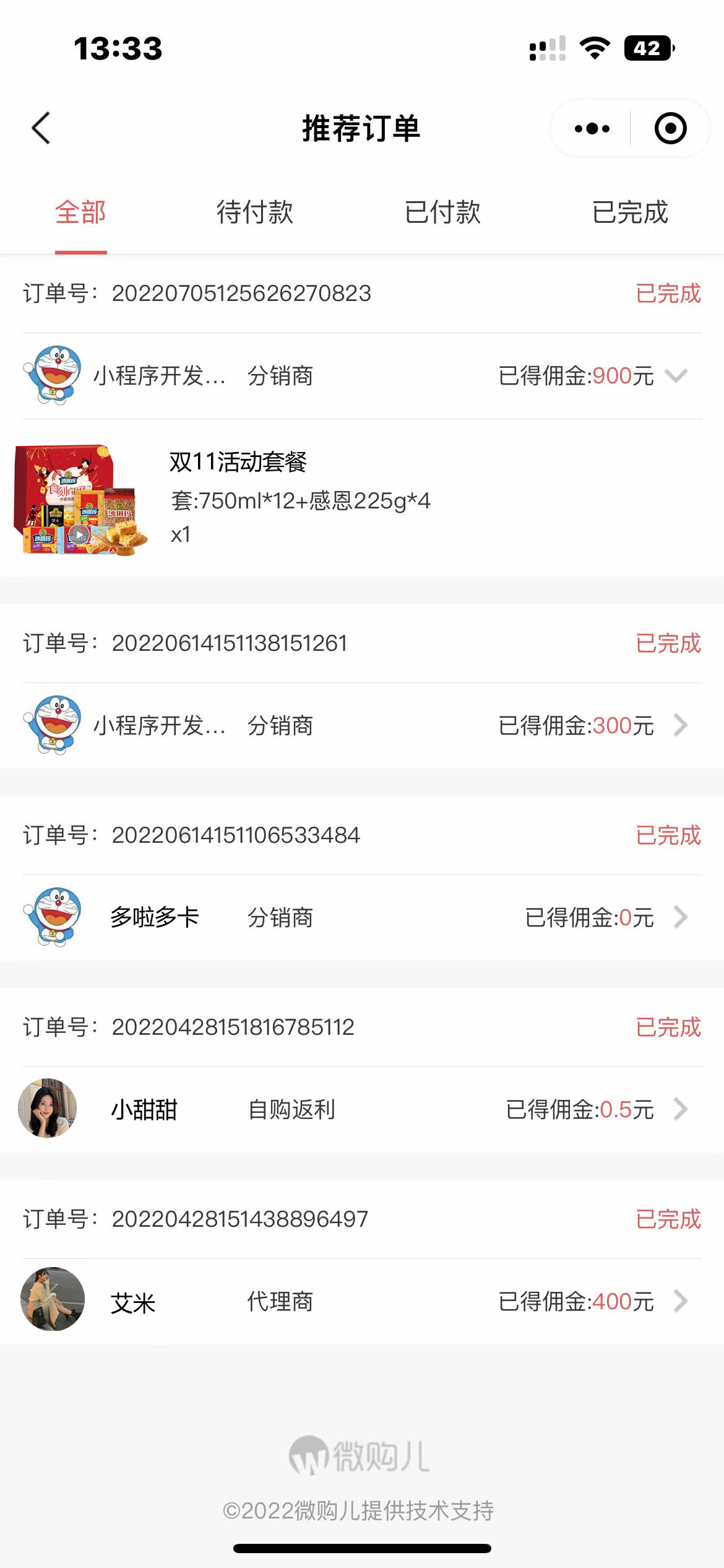 分销订单、分销佣金等一键查看,轻松管理成千上万的代理商